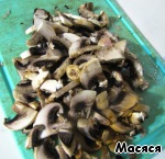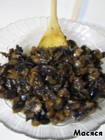 Грибы и баклажан обжарим на совсем маленьком количестве масла до готовности. |