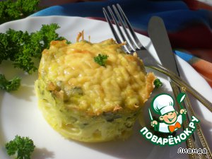 Поставьте в духовку, нагретую до 180*, на 15-20 мин. Когда сыр зарумянится - готово. Украсьте зеленью и...