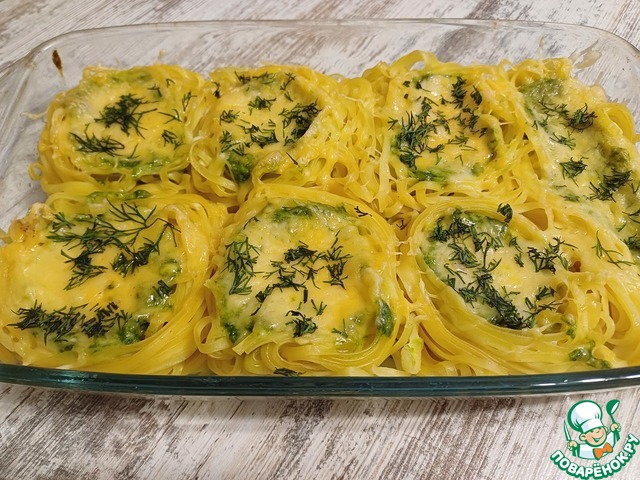 Рецепт «Макаронные гнезда с брынзой и щавелем»: