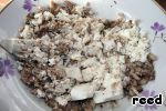 Шпроты выложить в тарелку, освободить от костей, растереть с брынзой в однородную массу. -