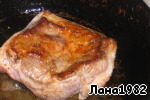 Затем мясо посолить и обжарить на смеси растительного и сливочного масла до румяной корочки.