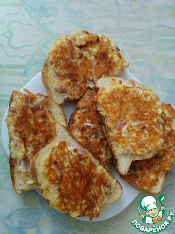 [+5]Быстро, не хлопотно и очень вкусно. Хлеб брала квадратные кусочки ржаные и еще сливочную колбасу положила.