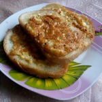 Делаются бутерброды с белым хлебом. Батон, помню, такой плотный был, сверху гармошкой, и при резке совсем не крошился. Я уже и запах белого хлеба забыла, не то, что вкус, так как делаю их теперь со ржаным хлебушком. Но сегодня решила сделать половину со ржаным для себя, и с белым, как делала тетя, для мужа. Нам нужно 6 ломтиков хлебушка. На картинке 3 ломтика ржаного хлебушка (я их еще решила слегка подсушить в тостере, но это не надо делать, мне просто захотелось; белый я не сушила).