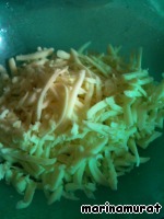 Мелко режем луковицу (я порубила в блендере) и добавляем к сыру, вбиваем туда 1 яйцо и хорошо перемешиваем. Можете добавить перчика.