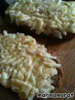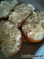 и на батон. У меня получилось даже не 6, а 7 бутербродов. Сначала хотела разложить начинку по всем бутербродам, а потом решила все же сделать еще и седьмой бутерброд, у мужа аппетит хороший:).