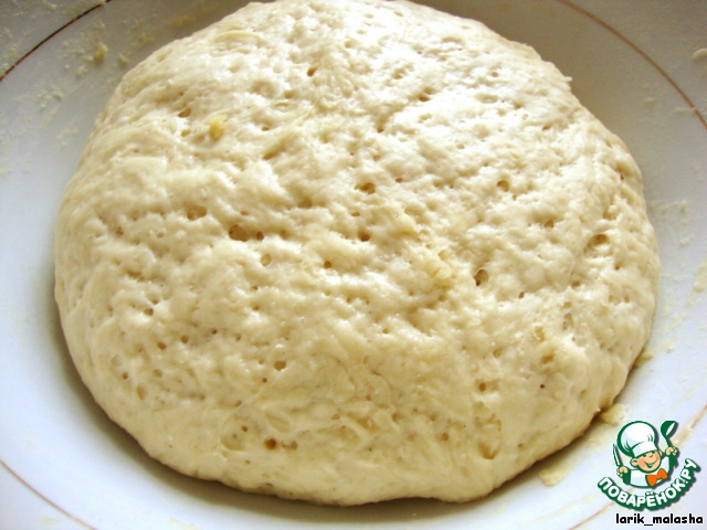 Накрыть форму пленкой и снова поставить в теплое место для подъема (где-то на 1-1,5 часа). Тесто снова значительно увеличится.