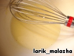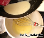 3) Теплую молочную смесь влить в яично-сахарную массу, постоянно помешивая.