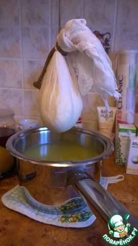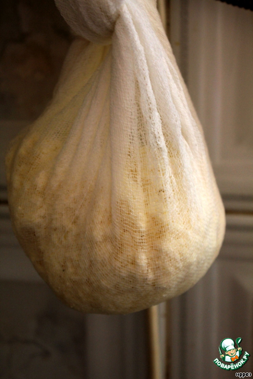 Подвешиваем и даем стечь сыворотке 1-2 часа.