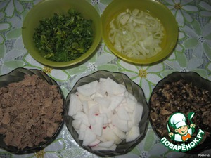 Ингредиенты для «Салат с печенью, грибами и редисом»: