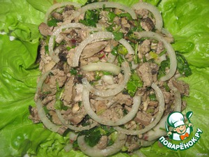 Рецепт «Салат с печенью, грибами и редисом»: