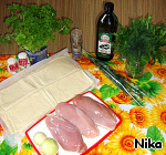 Ингредиенты для «Слоеный пирог с куриным филе»:
