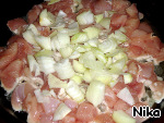Филе и лук нарезать кубиками.