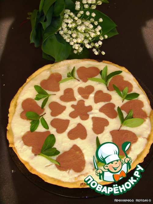 Сверху выложить крем. Поставить в холодильник охлаждаться. Украсить по желанию. Я украсила через трафарет какао.