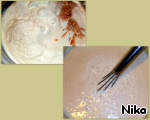 Впервые сын приготовил этот коктейль. Когда предложил мне его попробовать и отгадать, с каким соком, я, конечно же, сдалась. Взбиваю талое мороженое и сок венчиком, так как поздний вечер, и не хотелось мешать соседям звуками миксера.