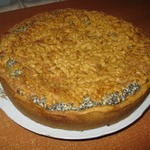 Смешать яйца с сахаром, вылить поверх творожно-орехово-маковой смеси. Сверху натереть оставшееся тесто и поставить в разогретую на 180 градусов духовку на 20-30 минут.