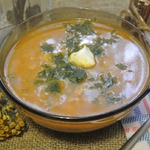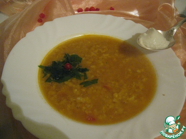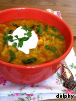 Рецепт этого блюда был размещeн на сайте в 2009 году пользователем Ирина Семенова под названием "Суп-пюре из красной чечевицы" и иллюстрирован мной в рамках акции "Раскраски". Любителям чечевицы и карри!