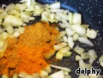Добавьте карри и куркуму. Готовьте, помешивая, еще секунд 30, пока не почувствуете аромат специй.