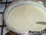 Сварить сырный соус: в сухой разогретой сковороде поджарить до золотистого цвета муку, постепенно, чтобы не было комков, развести сливки, добавить плавленый сыр и сухой базилик,