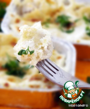 Густо посыпать сыром. И отправляем в разогретую до 200* духовку запекаться до румяной корочки. Готовые пельмени посыпаем зеленью и подаем к столу.