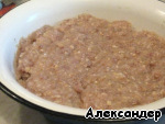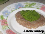 Сделать лепешку из фарша. Положить ложку горохового пюре.