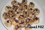 • Заготовки (у меня получились как шары). Кондитерским мешком (если его нет, то крем положить в полиэтиленовый пакет, уголок отрезать) начинить заготовки кремом. Сверху украсить оставшимся кремом.