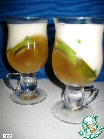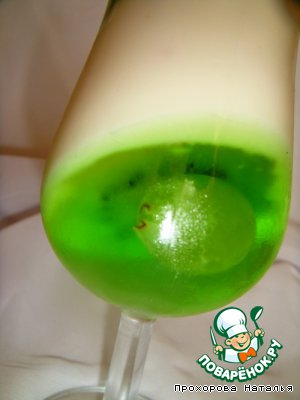 После того, как желе "схватилось", ровненько вкладываем по бокалам кружочек киви.