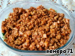 Сверху распределить фарш с помидорами.