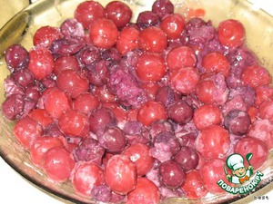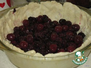 Поверх ягодок вылить товрожную смесь (она получается очень жидкой).