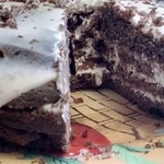 Готовый корж разрезать, смазать кремом. Теперь проявить силу воли, дать настояться торту. Если ночь простоит в холодильнике, с силой воли у вас всё в порядке.
