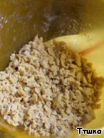 Добавить размягченное масло и перетирать, пока смесь не будет напоминать хлебные крошки