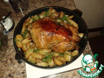Вкусная, нежная курица, запеченная в собственном соку. На гарнир - ароматная золотистая картошка.