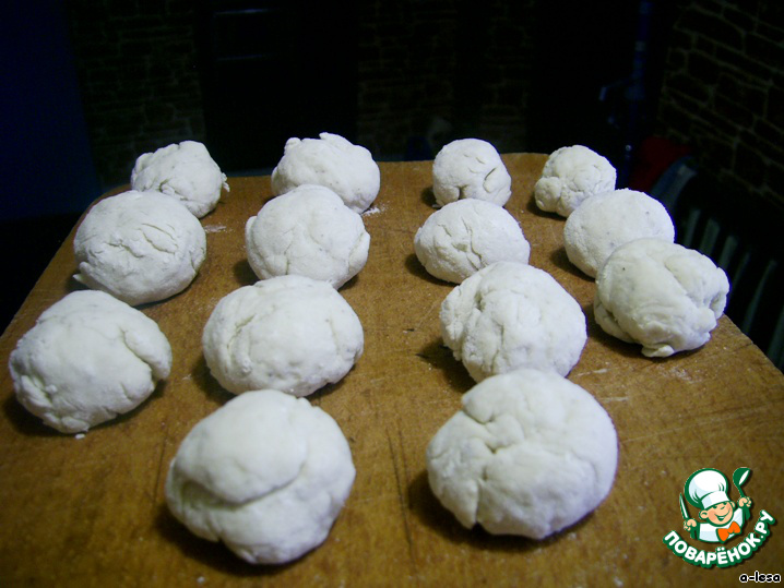 • Разделить тесто на одинаковые части и скатать из них шарики,