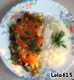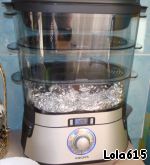 Укладываем все на нижний ярус пароварки, одновременно в чаше для риса готовим гарнир. Готовим 25 минут