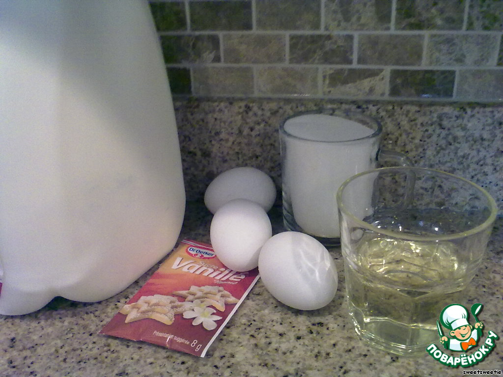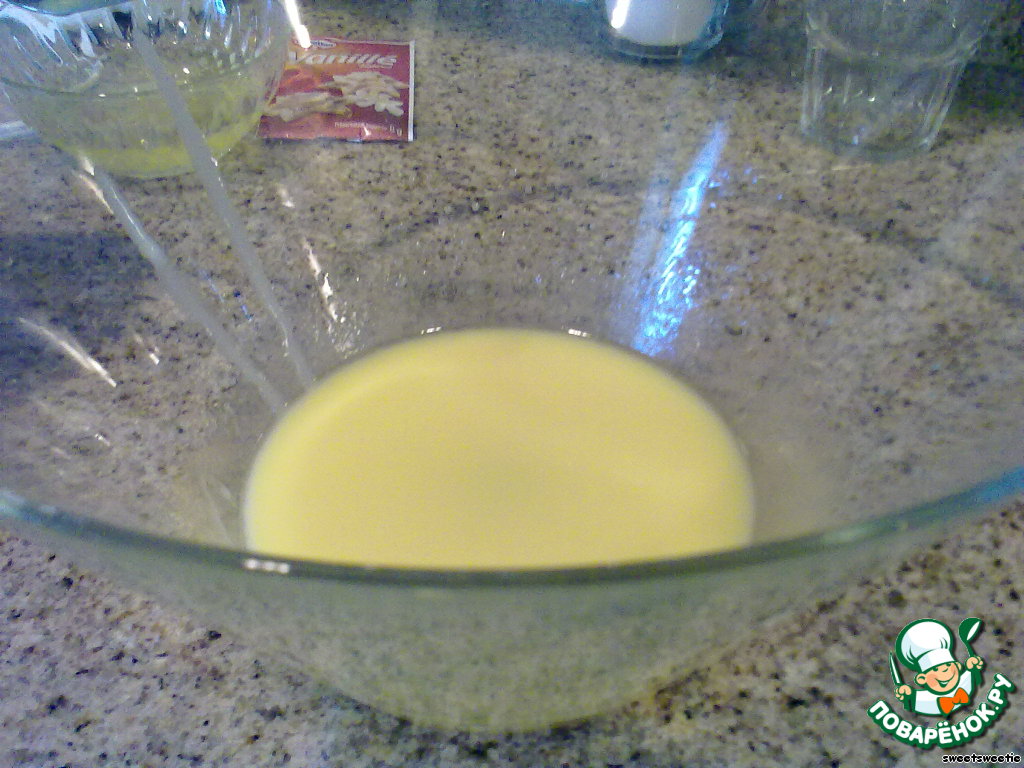 Лимонную цедру и ваниль размешать в молоке. Просеять вместе муку, разрыхлитель теста, соль...