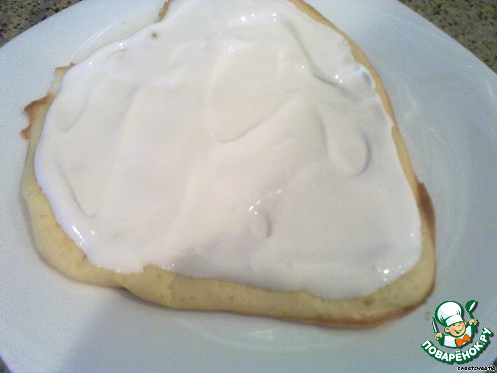 Вот так выглядит готовый корж. Разделить его на 2 коржа. -