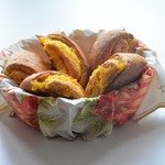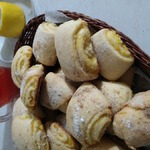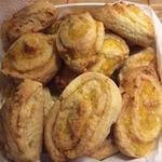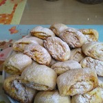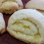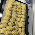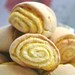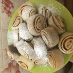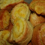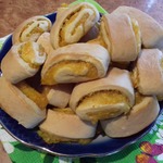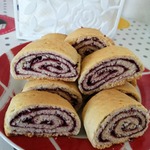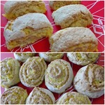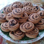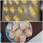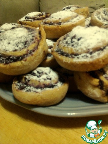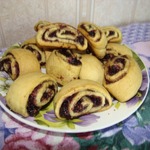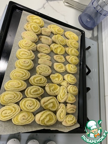 Рулет разрезаем (у меня получилось с одного рулета 12 печенюшек) и выкладываем наши печенья на противень, застеленный пергаментной бумагой. То же самое проделываем со второй частью теста. В результате у меня получилось 24 шт.