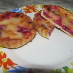 Сверху выложить вишню. У меня была замороженная вишня, которую я предварительно разморозила. А лучше использовать свежие ягоды (любые). Посыпать сахаром.