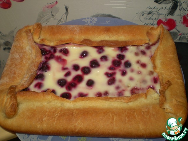 Отличный пирог из дрожжевого теста с начинкой из вишни и нежной сметанной заливкой. Отличный способ разнообразить фруктовые пироги. Рецепт этого блюда был размещeн на сайте в 2008 году пользователем Кристиша под названием "Черри пай" и иллюстрирован мной в рамках акции «Раскраски».