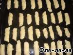Подготовим 2 блюдца: одно - со взбитым яйцо, другое - с сахаром. Макаем наше печенье сначала в яйцо, затем в сахар, выкладываем на противень и выпекаем до готовности минут 20.