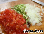 Посолить, добавить сахар, потушить на сковороде с 1 столовой ложкой растительного масла до полуготовности. Добавить половину стакана воды, уменьшить огонь и тушить до готовности.