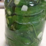 6. Как только пар уйдет, залить содержимое банки маринадом и добавить 1 столовую ложку уксуса. Накрыть банку марлей и поставить на широкую тарелку.