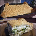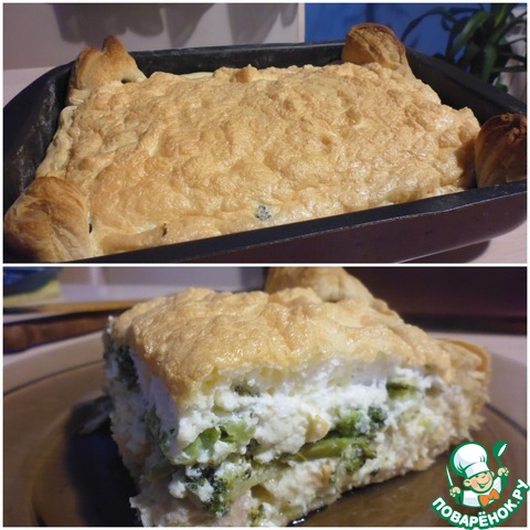 Приятное сочетание куриного филе, брокколи и сыра, покрытое нежнейшим сырным безе, которое создает очень гармоничную начинку этого пирога на основе из слоеного теста.