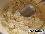 Нежно и аккуратно добавить туда мелко натертый голландский сыр.