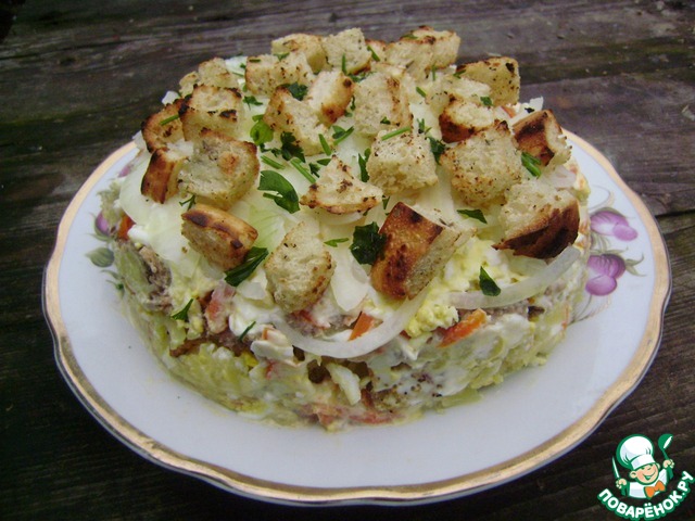 Салат «Сардинка с гренками»