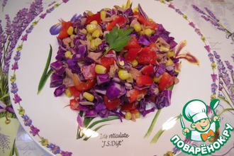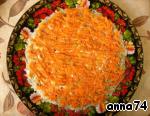 Экономный и вместе с тем праздничный салатик. Рецепт я нашла в журнале «Люблю готовить!»