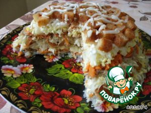 Половину гренок (этот слой я не поливала майонезом).