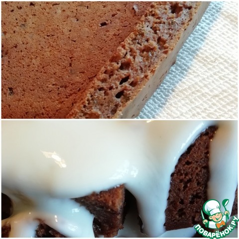 Теплый кекс переворачиваем на блюдо. Вот такой кекс у нас получился. В принципе, его можно кушать и таким..., но...
