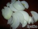 Лук режем кольцами. Я жалею, что нарезала всего одну, очень вкусный был лучок.