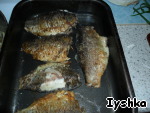 Карасиков из сковороды аккуратненько перемещаем в глубокий противень.
