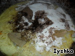 Добавляем в лук сливки, черный перец, душистый перец, лавровый лист. Кипятим буквально 1-2 минутки.